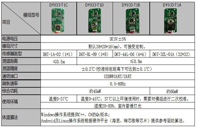 歐姆龍測(cè)溫模組是基于歐姆龍紅外高精度溫度傳感器以及先進(jìn)軟件算法的非接觸式測(cè)溫模組,款式多樣,有單點(diǎn)測(cè)溫型,陣列測(cè)溫型,以及熱成像測(cè)溫型等等,通過算法可實(shí)現(xiàn)測(cè)溫精度±0.2℃,具備數(shù)據(jù)實(shí)時(shí)輸出顯示,可通過USB接口直接連接電腦和手機(jī),配合上位機(jī)軟件或者手機(jī)APP程序,使用十分方便。
