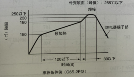焊接推薦條件雖然顯示出了印刷電路板面的溫度曲線,但是各繼電器的條件可能會有所不同,因此請在對各規(guī)格加以確認的基礎(chǔ)上進行使用,在焊接之后,請勿立即浸漬到清洗液等冷卻液中,會損傷繼電器的密封性,如下圖所示: