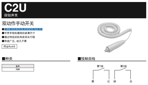 例如歐姆龍的C2U按鈕開關(guān),他能通過特定機構(gòu)實現(xiàn)長行程,通過速動機構(gòu)獲得良好的觸感,尺寸也可用手輕松握持,能給客戶很好的使用體驗。