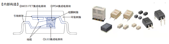 具有超小型,高壽命,低驅(qū)動電流,低導(dǎo)通電阻的特點;由3個集成電路塊構(gòu)成:①LED集成電路塊(發(fā)光二極管);②PDA集成電路塊(發(fā)光二極管陣列);③MOS FET集成電路塊,多種端子類型,可負載電壓20V~600V。