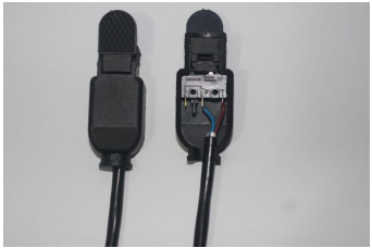 據(jù)以上氬弧焊焊槍實體圖可以看出,在焊槍的把手柄處有一個開關來作為槍體氣體的燃燒開關。我們可以看下在手柄處的開關結(jié)構(gòu)件如下圖: