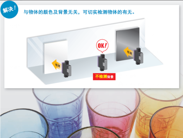 二:與物體的顏色及背景無關(guān),可切實(shí)檢測物體的有無