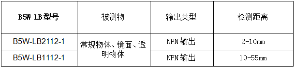 歐姆龍B5W-LB系列是限定反射型傳感器,判斷物體有無,其最大特點是可檢測透明物體,檢測距離為2mm-55mm,完全可以替換E3Z-D61、E3Z-D61、E3Z-L63(可檢測透明玻璃)、和E3Z-L68(可檢測透明玻璃);