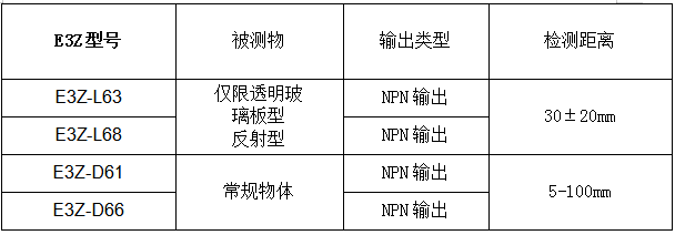 表二歐姆龍E3Z部分產(chǎn)品參數(shù)