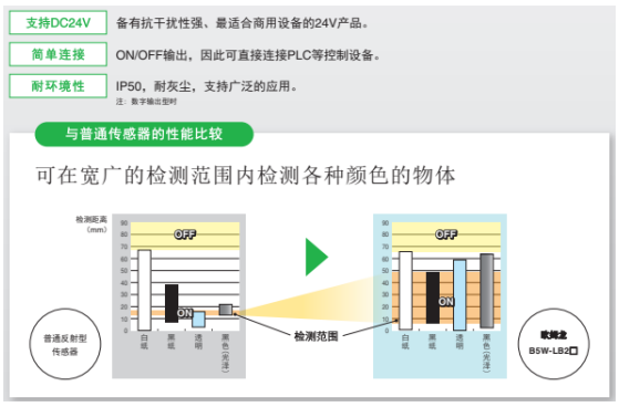 歐姆龍限定反射傳感器,不易受顏色和材質(zhì)影響的限定反射型鏡面、黑色、透明物體也都會(huì)檢測(cè)出來,支持DC24V的設(shè)備內(nèi)置用。不受背景及物體的顏色影響,切實(shí)檢測(cè)希望檢測(cè)的物體。