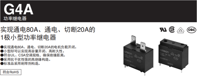 G4A是一款極小型功率繼電器,小型卻可以實現(xiàn)高容量開閉,高耐久性,有接線片端子和印刷基板用端子可選擇,穩(wěn)定的性能也足夠小尺寸為產(chǎn)品開發(fā)預留足夠的空間。