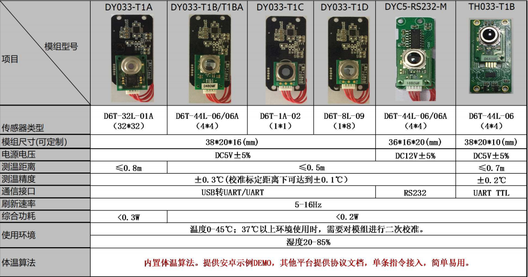 我們同時(shí)也可以給您提供一整套的測(cè)溫解決方案!我們可以根據(jù)客戶測(cè)溫需求,搭載1*1,1*8, 4*4,32*32歐姆龍測(cè)溫傳感器,實(shí)現(xiàn)檢測(cè)距離0.3-0.8米測(cè)溫,測(cè)溫精度可以達(dá)到±0.3℃(校準(zhǔn)標(biāo)定距離下可達(dá)到±0.1℃)。也可以滿足客戶的多種串口通訊方式(1)USB轉(zhuǎn)UART/UART;(2) RS232 ;(3) UART TTL。模塊資料如下:
