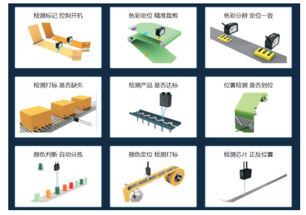顏色傳感器主要用于檢測目標(biāo)物體表面顏色,主要在工業(yè)、醫(yī)療和安防系統(tǒng)中有著廣泛的應(yīng)用。常見用途有混料檢測、有無檢測、污漬檢測等等。采用傳統(tǒng)光電傳感器通過反射光量之差進(jìn)行檢測時(shí),可能會檢測背景、受背景影響導(dǎo)致無法對檢測物體執(zhí)行穩(wěn)定檢測的現(xiàn)象。如果采用通過顏色傳感器輸出各檢測物體顏色信號的方式,有時(shí)可確認(rèn)檢測物體的有無。