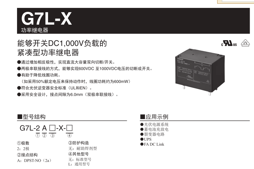 這款可應(yīng)用于光伏電源系統(tǒng)的G7L-X功率繼電器,還可替代傳統(tǒng)繼電器為光伏行業(yè)以外的各種行業(yè)