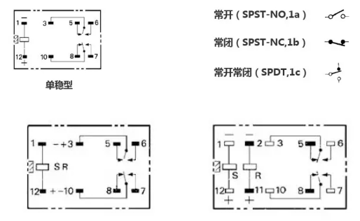 ③ 接點結構:2c(雙刀雙擲)、4c(四刀雙擲)、1a、1b等