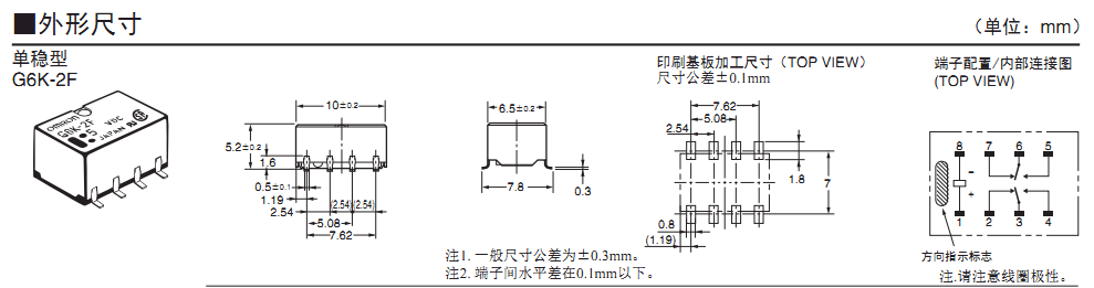 高5.2mm×寬6.5mm×長(zhǎng)10mm的超小型,對(duì)應(yīng)高密度封裝(G6K(U)-2F(-Y)型)。