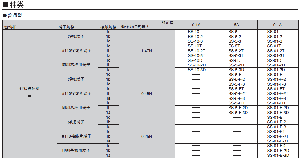 ? 備有0.1A~10.1A型的各個(gè)品種,產(chǎn)品規(guī)格齊全,是歐姆龍暢銷的開關(guān)。