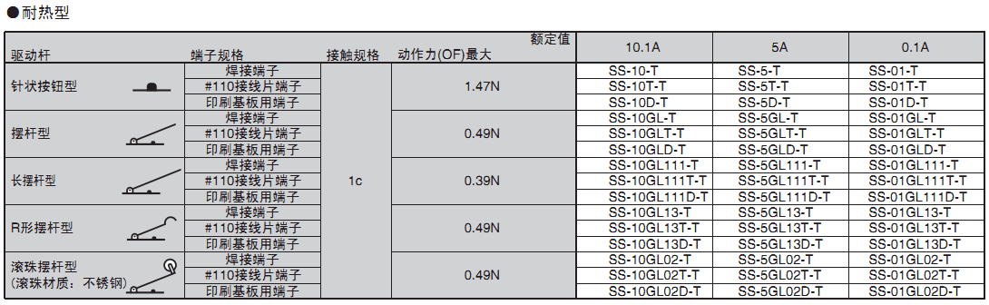 ? 備有0.1A~10.1A型的各個(gè)品種,產(chǎn)品規(guī)格齊全,是歐姆龍暢銷的開關(guān)。