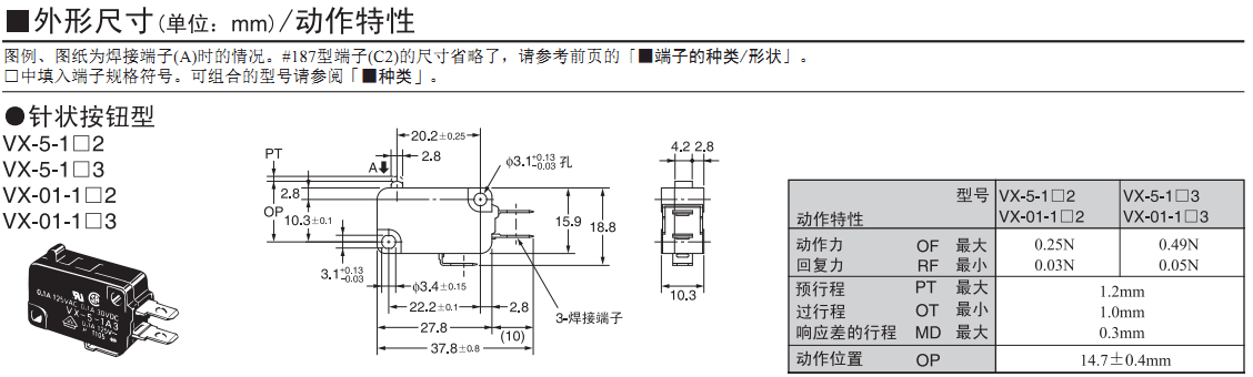 歐姆龍微動(dòng)開(kāi)關(guān),VX-5-1A2,歐姆龍微動(dòng)開(kāi)關(guān)VX