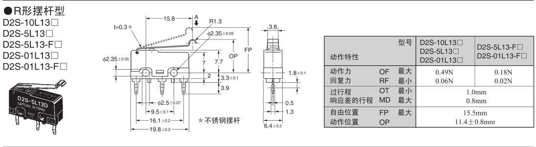 歐姆龍微動開關(guān), D2S-5L13,歐姆龍微動開關(guān)D2S