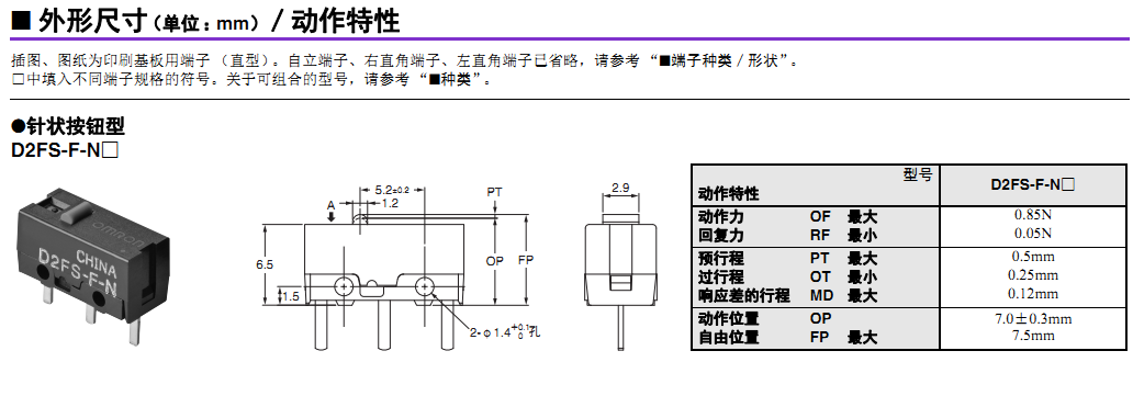 歐姆龍微動開關(guān), D2FS-F-N,歐姆龍微動開關(guān)D2FS
