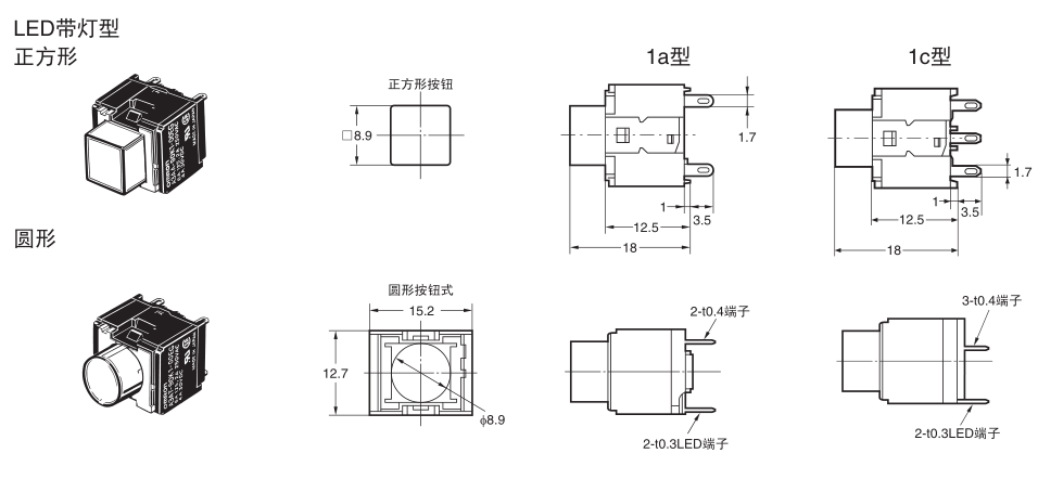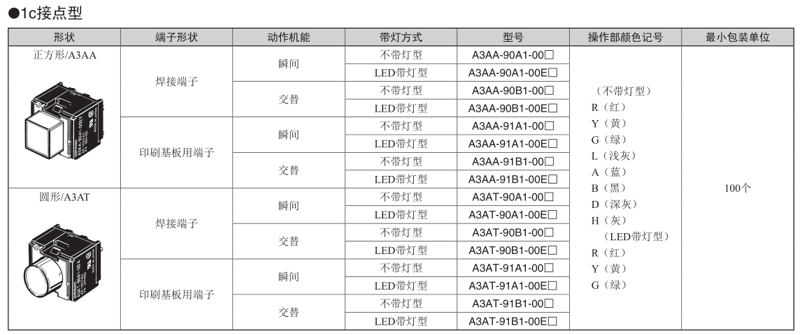 • A3AT-91L1-00B方形按鈕開關(guān)