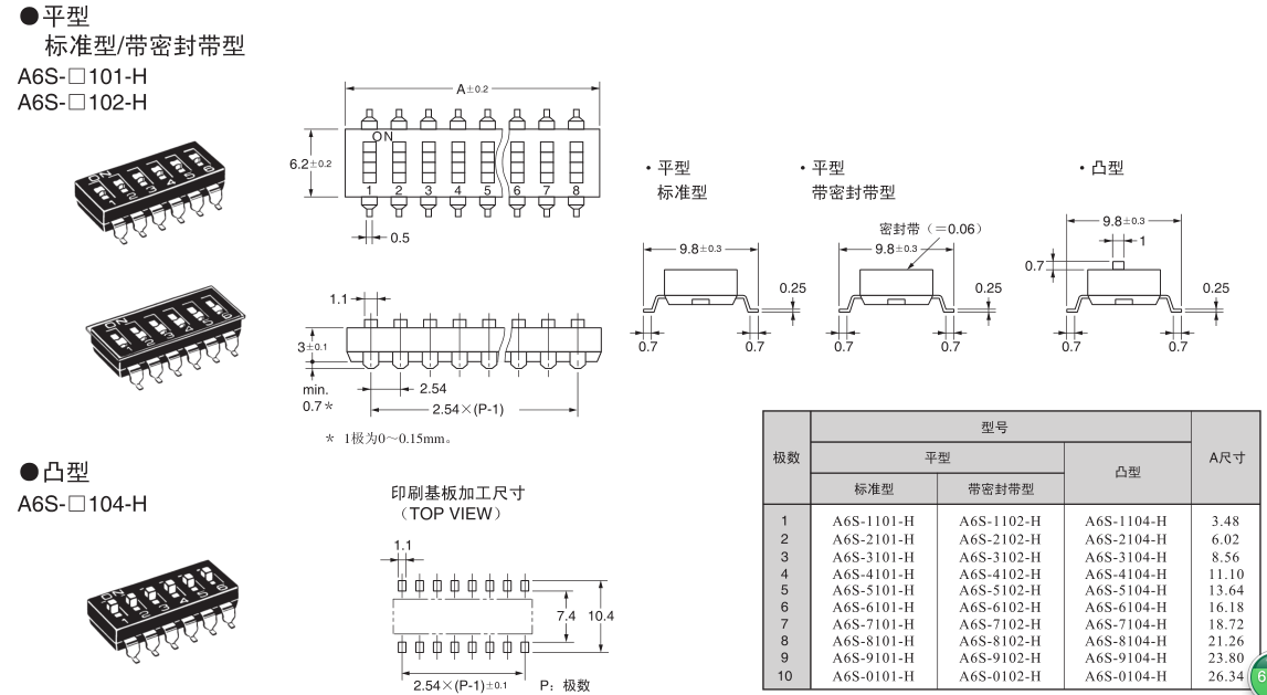 標(biāo)準(zhǔn)表面安裝滑動(dòng)型撥動(dòng)開(kāi)關(guān)