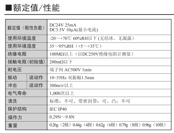 ? 接點(diǎn)部分為鍍金雙接點(diǎn),通過動(dòng)作的自清潔構(gòu)造,確保了高可靠性。