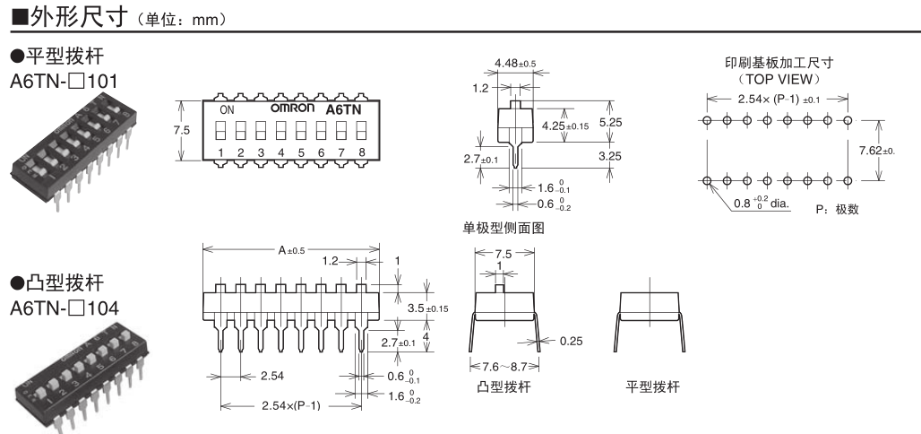 • A6TN 滑動(dòng)型DIP開關(guān)