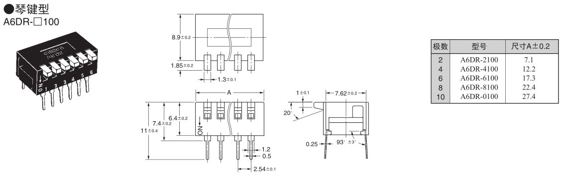 A6DR-2100滑動琴鍵型DIP開關(guān)