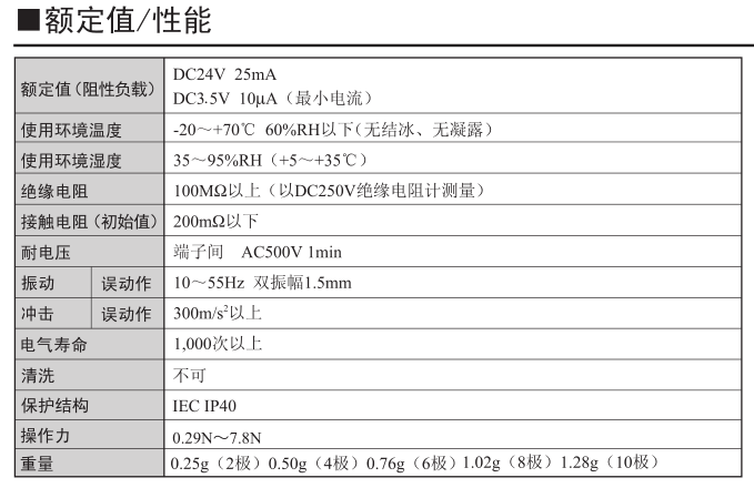 接點部分為鍍金雙接點,通過動作的自清潔構(gòu)造,確保了高可靠性。