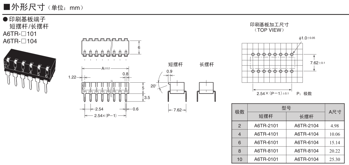 薄型·標(biāo)準(zhǔn)間距(2.54mm)下可進(jìn)行連續(xù)安裝的琴鍵型DIP開關(guān)