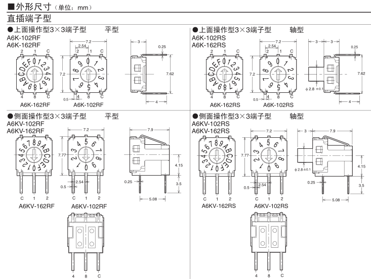 具有表面安裝端子、直插型端子的兩種型號對應。還提供側(cè)面操作型產(chǎn)品