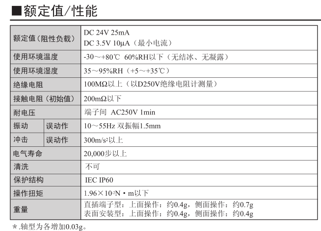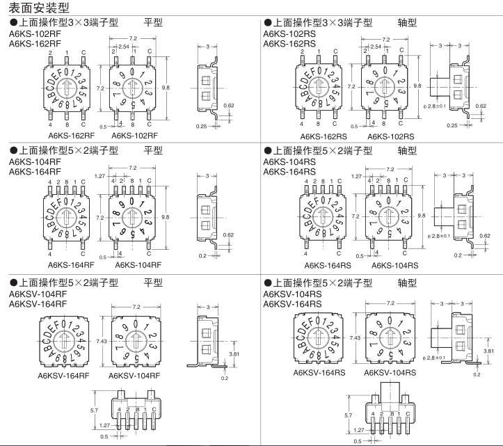 具有表面安裝端子、直插型端子的兩種型號(hào)對(duì)應(yīng)。還提供側(cè)面操作型產(chǎn)品