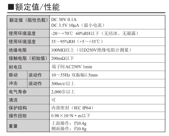基座部插入成形,轉(zhuǎn)動(dòng)部分通過(guò)O環(huán)相當(dāng)于密封構(gòu)造IP64(IEC-60529)防止焊劑浸入,即使在塵埃較多或有水的地方使用也能確保高接觸可靠性。