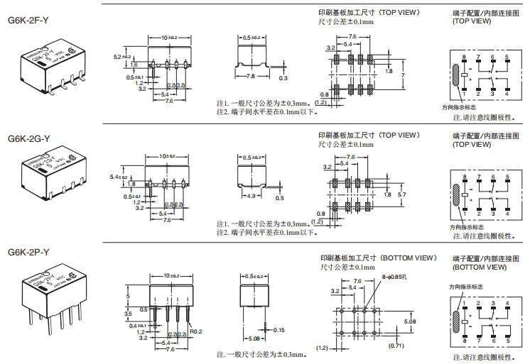 高5.2mm×寬6.5mm×長10mm的超小型,對應高密度封裝(G6K(U)-2F(-Y)型)。