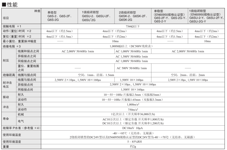 線圈接點間耐高壓2,000V AC、高度耐沖擊電壓2,500V 2×10μs(Telcordia標(biāo)準(zhǔn))。