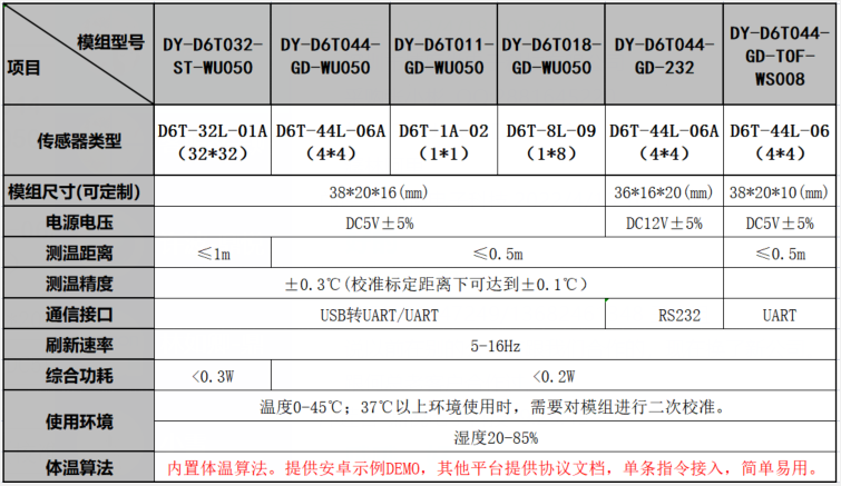采用串口通信協(xié)議,波特率默認(rèn)115200,8數(shù)據(jù)位,1停止位,無校驗。其中用戶控制端是主機(jī),測溫模組是從機(jī),采用一發(fā)一收。協(xié)議輸出數(shù)據(jù)有兩種查詢命令方式,一是只查詢?nèi)梭w溫度,二是查詢陣列溫度數(shù)據(jù)。